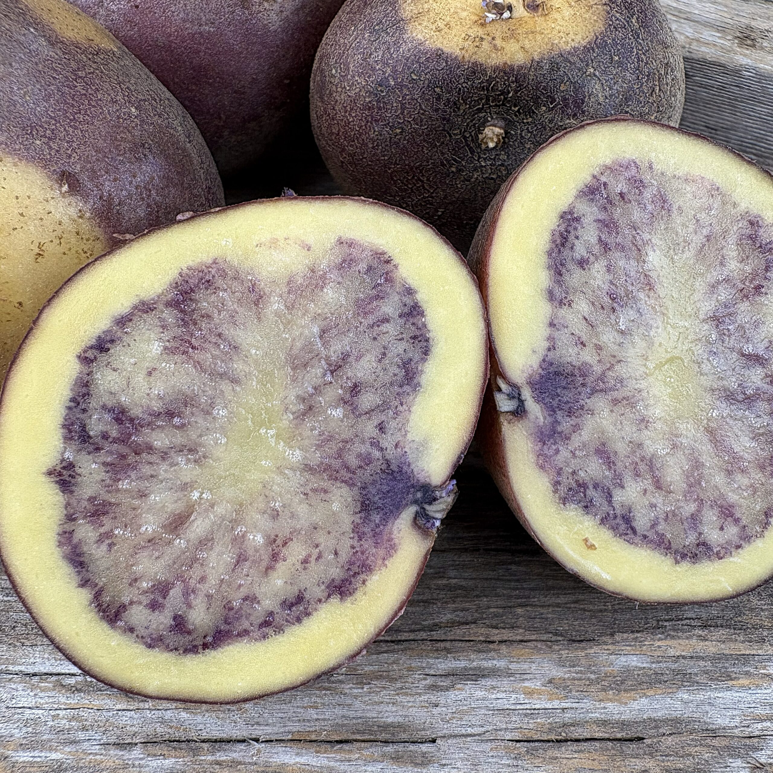 Add a splash of color to your garden with Organic Jester Seed Potatoes! This earlyโseason variety matures in 65โ90 days and produces clusters of small, round tubers. Their purple skin shows golden highlights, while the flesh reveals a striking marbled mix of purple and yellow. Moreover, the vibrant appearance stays true both raw and cooked, making Jester a standout in any kitchen.ย Beyond their looks, Jester potatoes deliver a buttery, slightly nutty flavor and firm texture. As a result, they work beautifully in summer salads, roasting, or quick steaming. In addition, their playful coloring enhances garden harvests and adds visual appeal to every meal.